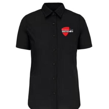 65% polyester / 35% coton. Tissu popeline. Entretien facile. Col non boutonné. Boutons ton sur ton. Poche poitrine côté gauche en V. 1 bouton de rappel. Bas arrondi.