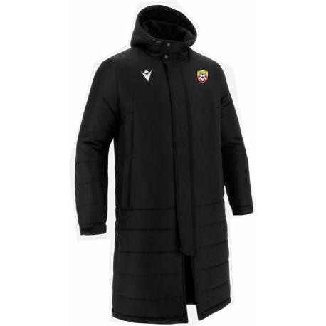 Grosse veste longue, sur les bancs, en tissu Grant, à la trame travaillée, léger, confortable et résistant à la pluie. Doublée polaire pour assurer une protection thermique. Poches chauffe-mains doublées polaires. Poches et fentes latérales avec fermeture éclair. Rabat frontal coupe-vent avec boutons-pression cachés. Capuche, partie inférieure des manches et partie inférieure du vêtement matelassées en horizontal.