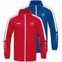 Les matériaux fonctionnels résistants à l'eau de la veste de pluie Power de JAKO, qui, avec les coutures principales collées, protègent contre l'humidité indésirable, assurent une sensation corporelle agréable. La veste de pluie Power est fabriquée en 100% polyester et, grâce à la lamination du matériau supérieur, elle est même capable de supporter les intempéries.