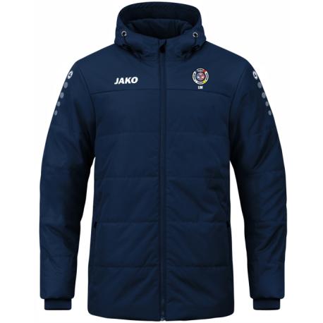 Le matériau extérieur résistant à l'eau, le rembourrage thermo-isolant et le polaire doux à l'intérieur font de la veste coach Team de JAKO votre équipement idéal quand il fait plus froid. En cas de conditions météorologiques défavorables, vous pouvez utiliser le capuchon intégré au col. En outre, les manches avec bord en Ripp intégré et le cordon de serrage et arrêts au capuchon empêchent la pénétration du vent et de la pluie. La veste vous assure ainsi un confort de port optimal.