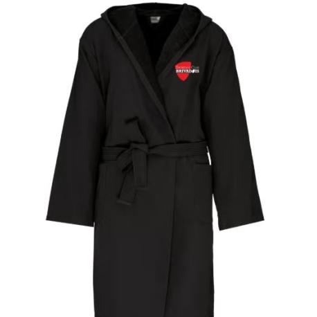 100% coton biologique. Maille Terry. Toucher agréable et doux. Grande capuche. 2 poches côté plaquées avec surpiqûre de renfort en haut de poches. Ceinture avec passants. Lien d’accrochage dans le col. Finition double aiguille bord capuche, bas de manches et de vêtement. Finition tubulaire à l'ourlet bas et bas de manche.