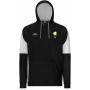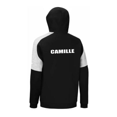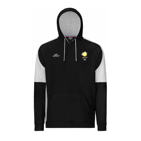 Sweat en molleton bi-matière coton et polyester pour un confort total. Intérieur du sweat gratté, apportant douceur et toucher duveteux. Empiècements sur le haut des épaules et le long des bras en gris chiné. Intérieur de la capuche en coloris opposé. Possibilité de serrage du col à l’aide d’un cordon. Grande poche avant type “kangourou”. Ruban personnalisé Eldera sur la partie latérale droite du sweat. Finition des manches et de la ceinture en bords-côtes. Logos brodés. Bande de propreté tricolore à l’intérieur du col. Composition 52% coton et 48% polyester.