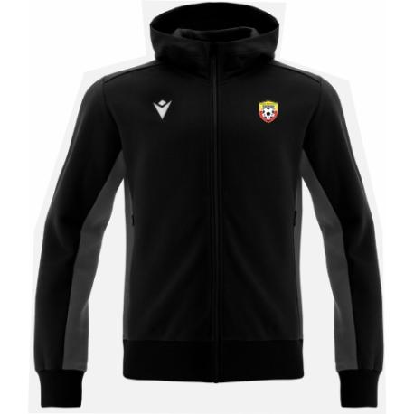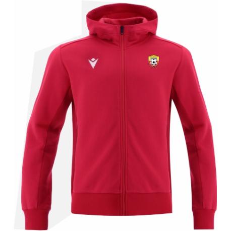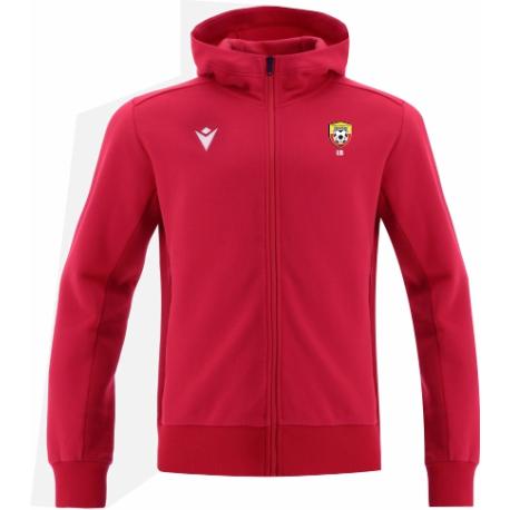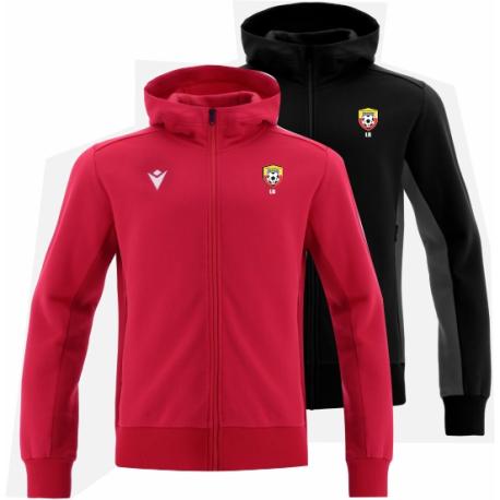 Sweat de loisir en polycoton molletonné avec fermeture à glissière centrale complète moulée sous pression. Poignets et bas côtelés. Poches latérales à fermeture à glissière et tirette en caoutchouc avec Macron Hero. Empiècements ton sur ton sur les côtés et sous les manches.