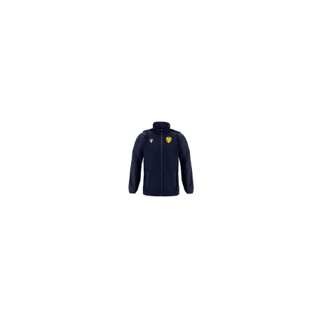 Veste en tissu résistante à l'eau avec doublure en résille, à la fois imperméable et respirante. Fermeture à glissière centrale complète inversée en nylon avec curseur autobloquant. Poches latérales à fermeture à glissière. Capuche rétractable dans le col, poignets élastiqués et bas avec cordon coulissant réglable. Empiècements ton sur ton sur les manches.